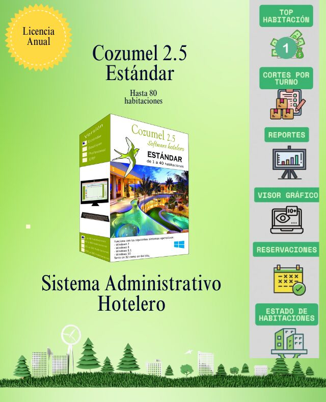 Cozumel 2.5 es un sistema de front desk diseñado para hoteles de cualquier tamaño, que ofrece: